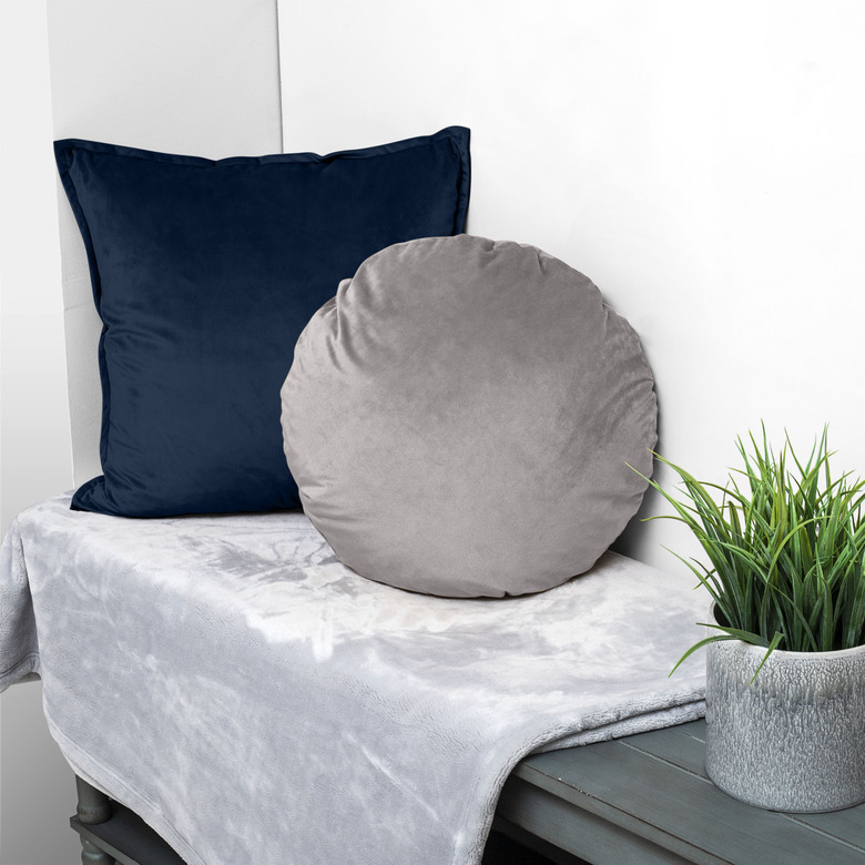 2. Better Homes & Gardens Feather Filled Velvet Square & Round Decorative Throw Pillows, Indigo & Gray, 2 Piece Set, $24.88