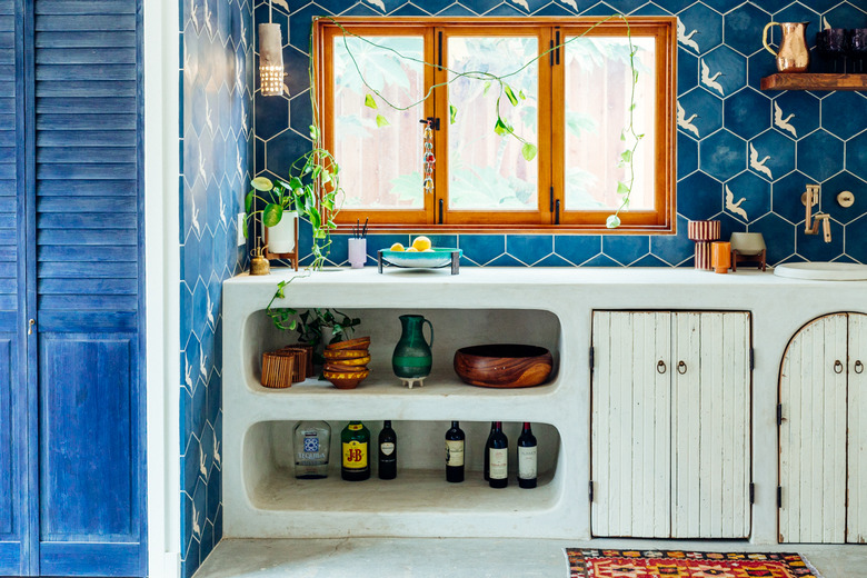 Yes, this is another shot from Justina Blakeney's Casita. No, we're not sorry. This petite bar setup is on the other side of her garage, and it has great organizational tricks as well. Namely, there are doors (right next to another mini set of built-ins) that conceal even more storage. This approach makes it easy to hide the less-than-aesthetic items and show off the pretty things you love.