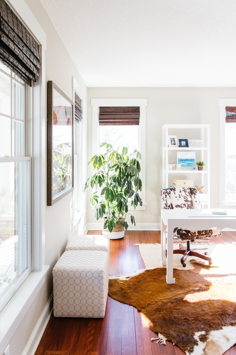 Roman shades are a classic, but when you choose to go with bamboo instead of linen or another fabric, you add texture and a contemporary touch. Here, Interior Impressions paired bamboo shades with a cowhide rug and office chair for an elegant space that doesn't take itself too seriously. And the best part is that you can adjust their height based on the time of day and your privacy needs.