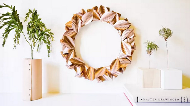 1. Decorate an entryway wall with a rose gold wreath made from aluminum cans.