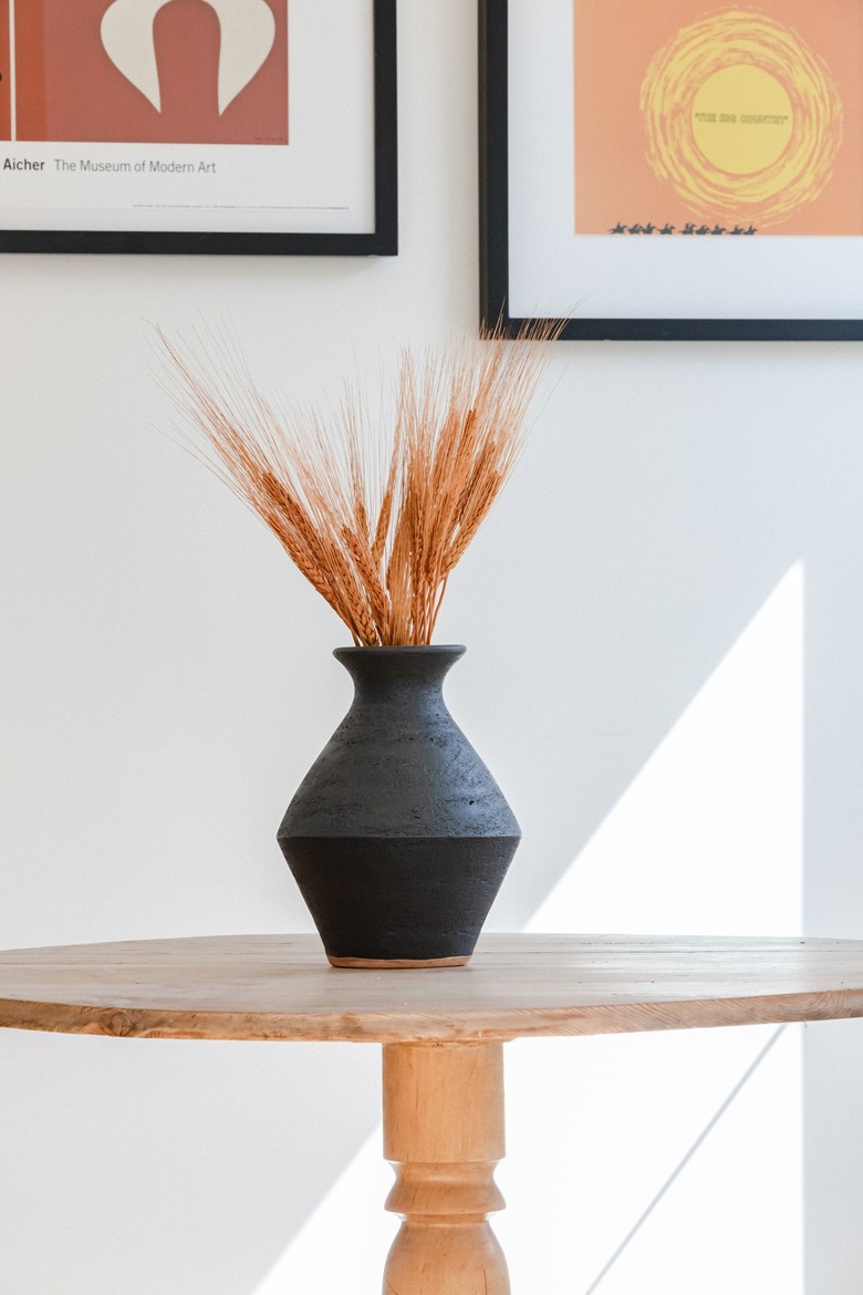 2. Add earthy dried wheat to a black minimalist vase for a simple snapshot of autumn.