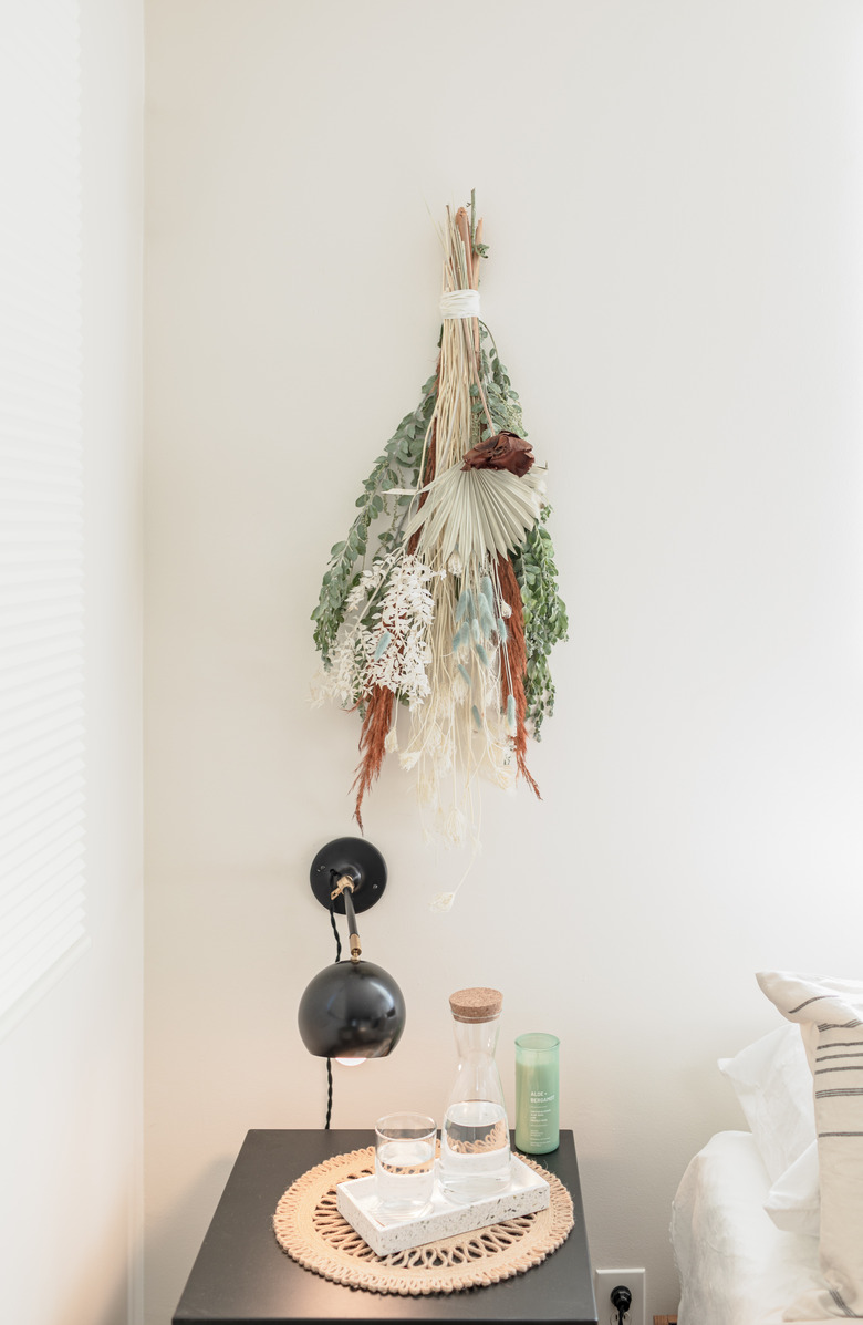 12. Decorate your bedside with a dried floral bouquet, and hang it upside down.