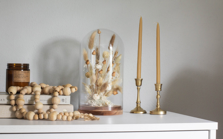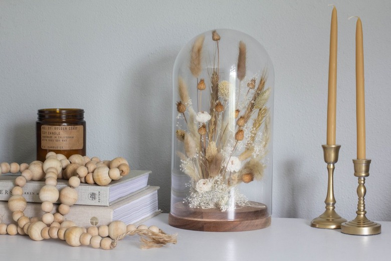 7. Use seasonal dried florals (such as bleached phalaris and centaurea pods) to make a unique cloche design.