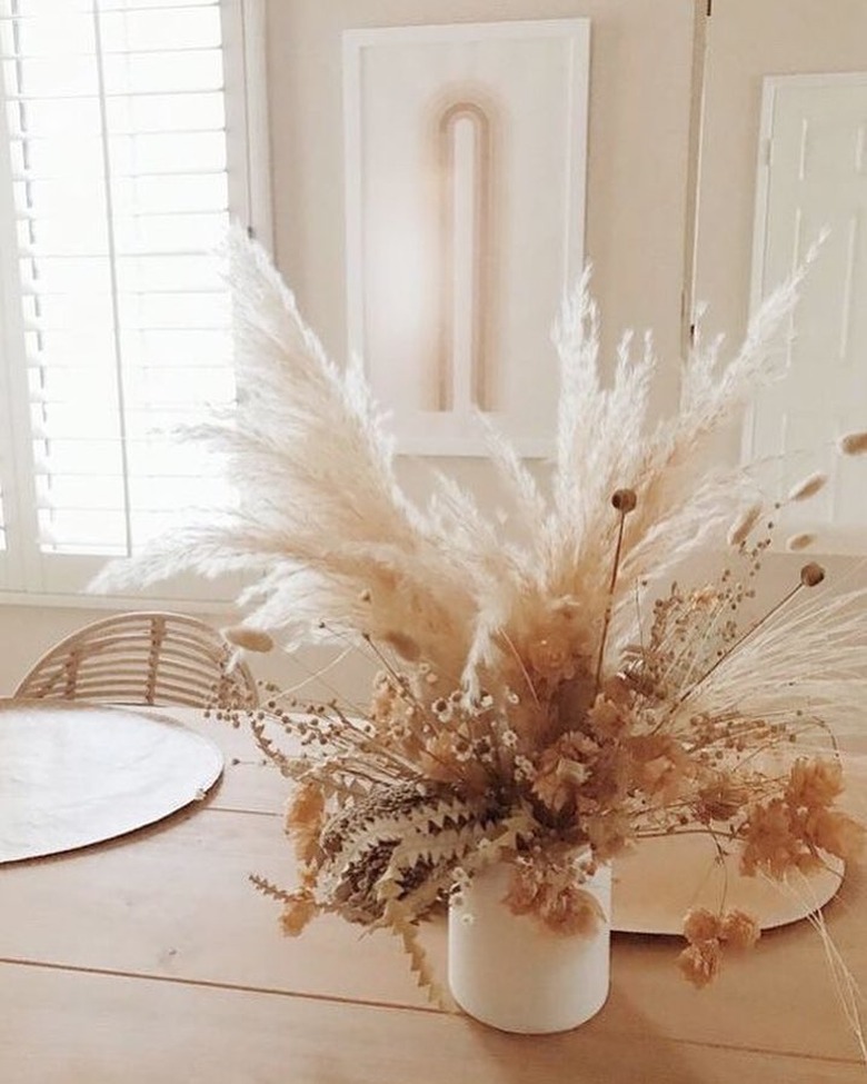 14. Add tall dried pampas grass to your nightstand, because it's a bold move.
