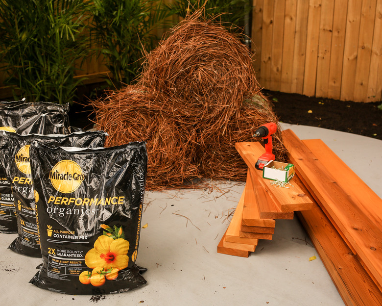 Lumber cut to desired dimensions and optionally stained (Ciolino and Armato used 5/4 x 6 cedar planks and stained them with a vegetable garden-friendly stain)