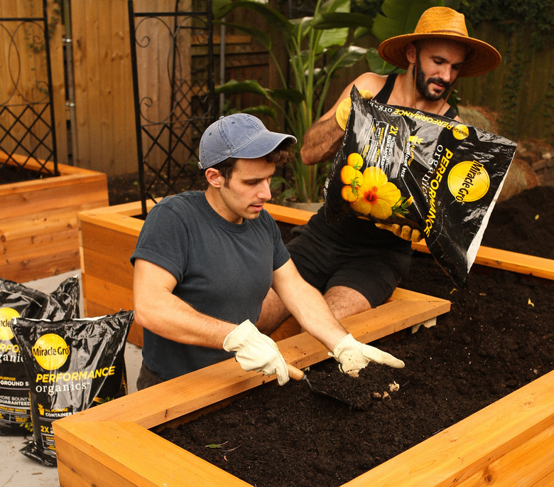 5. Fill the garden beds up to about a half to one inch beneath the top edge using Miracle-Gro® Performance Organics® Raised Bed Mix.