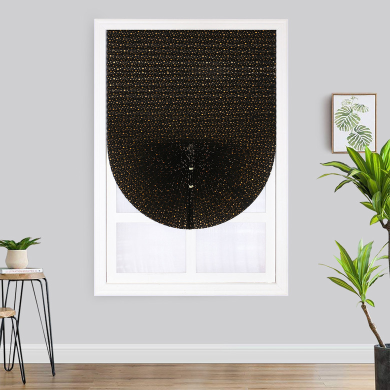 Here's a great option if you're either A) no good with installing hardware (no judgement), or B) looking for something temporary: This blackout blind has a self-adhesive strip, making set-up crazy-easy. Plus, we're pretty much digging the gold start motif, which we probably wouldn't pick for a living room, but in a themed bathroom or nook, could be oh-so-fun.
