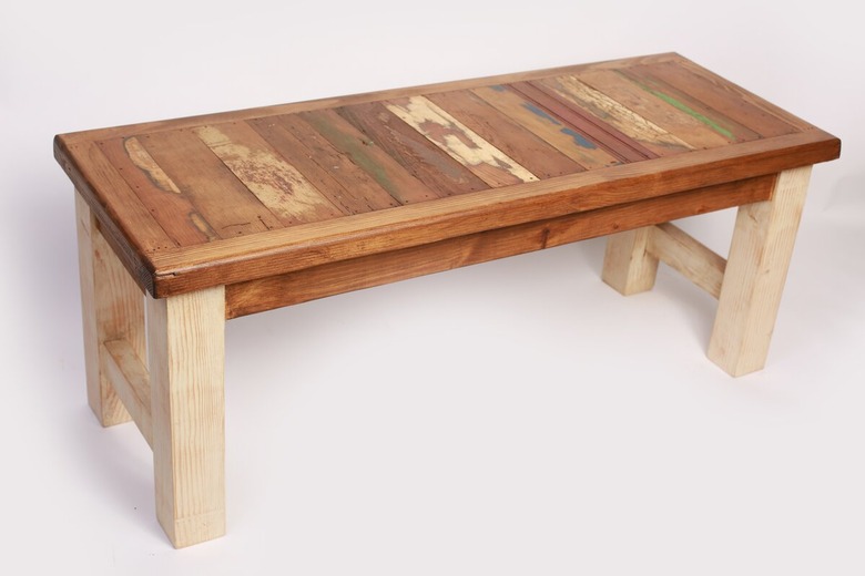 Of course, you can use any reclaimed door as wood for a project. This bench from Loon Peak is made of antique doors and the legs were distressed by hand. But if you have a door with decorative details, you may prefer highlighting them as Forever & Always Vintage did with their hallway bench, as seen in this photo below.