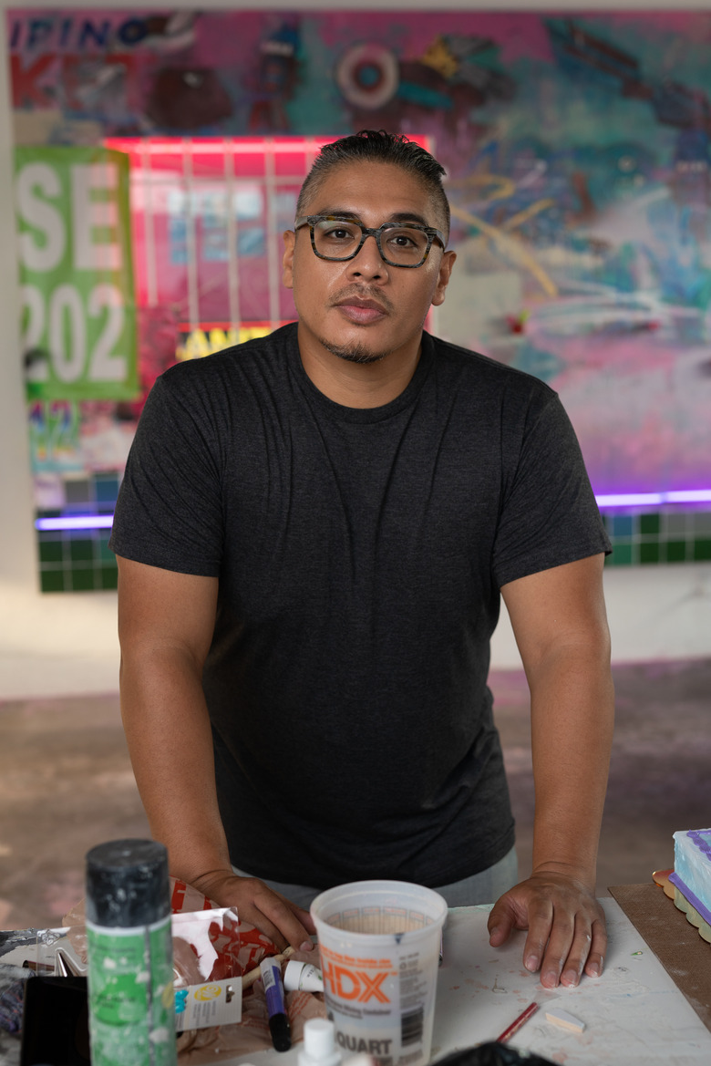"I enjoy how people organically take images of these pieces and use them in different ways," adds Martinez, who released a limited series of remixed lawn signs, distributed by Charlie James Gallery in Chinatown, with proceeds benefitting the ACLU. "During these cruel and meaningful times, they have become a digital protest sign on social media and on people's front lawns and windows with the remixed election lawn-sign project. This usage for me is rewarding because at the end of the day I want to be useful."
