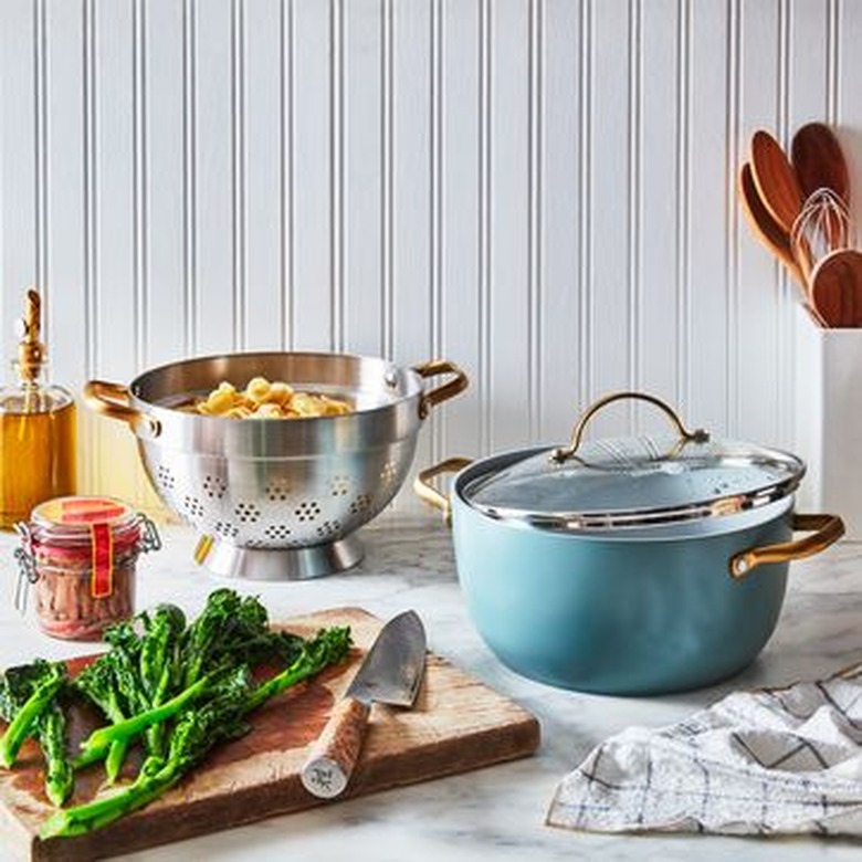 GreenPan has been a mainstay of ceramic pots and pans and their latest culinary staple, the product of an ultra-cool collaboration with Food52, doesn't fall short of amazing. The pot and colander combo works on induction cooktops and in the oven plus, it's the ultimate companion for one-pot dinners. It's prime for whipping up pasta, shellfish, and everything else in between.