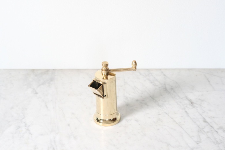 There's something so basic about cranking out peppercorns from a grocery store refill. This pepper mill, handmade of polished brass, is a whole new game, bringing artful flair to cooking and presentation.