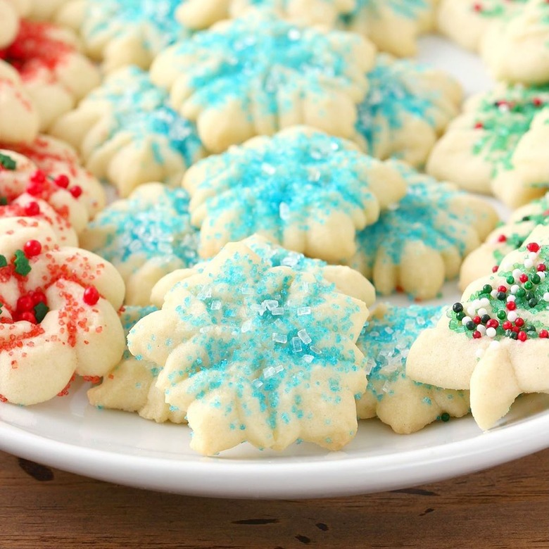 If you're looking for a great spritz cookie press, we recommend this $32 version from Sur la Table, which comes with 12 different cookie disk shapes. As for recipes, we'll leave our favorites down below.