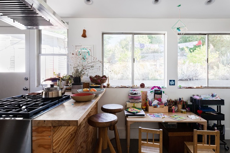If your cooktop is on your kitchen island, that's where your stove vent needs to be as well. Luckily there are plenty of chimney-style range hoods to choose from. In this family-friendly, Eagle Rock kitchen, the vent helps define the workspace in the open room. And it gives the cook a perfect view of the kids.