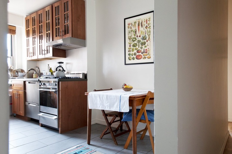 In apartment kitchens, you might not have the luxury of a ducted hood, so a sleek undermount stove vent that cleans and recirculates air is the way to go. In this Lower East Side apartment, the vent doesn't overwhelm the brown upper cabinets that are necessary for storage.