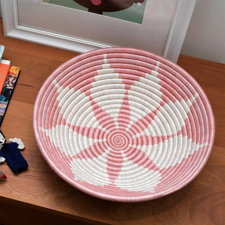 Made of all natural fibers and organic dyes, this blush bowl was handmade in Rwanda. It features the "hope" design inspired by the Rwandan flag.