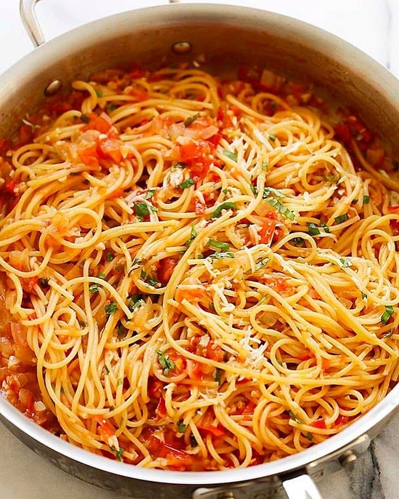 This dish calls for 10 ingredients, 20 minutes of your time, and one pot. Plus, you can easily make it vegetarian or vegan by substituting the chicken broth and Parmesan cheese.