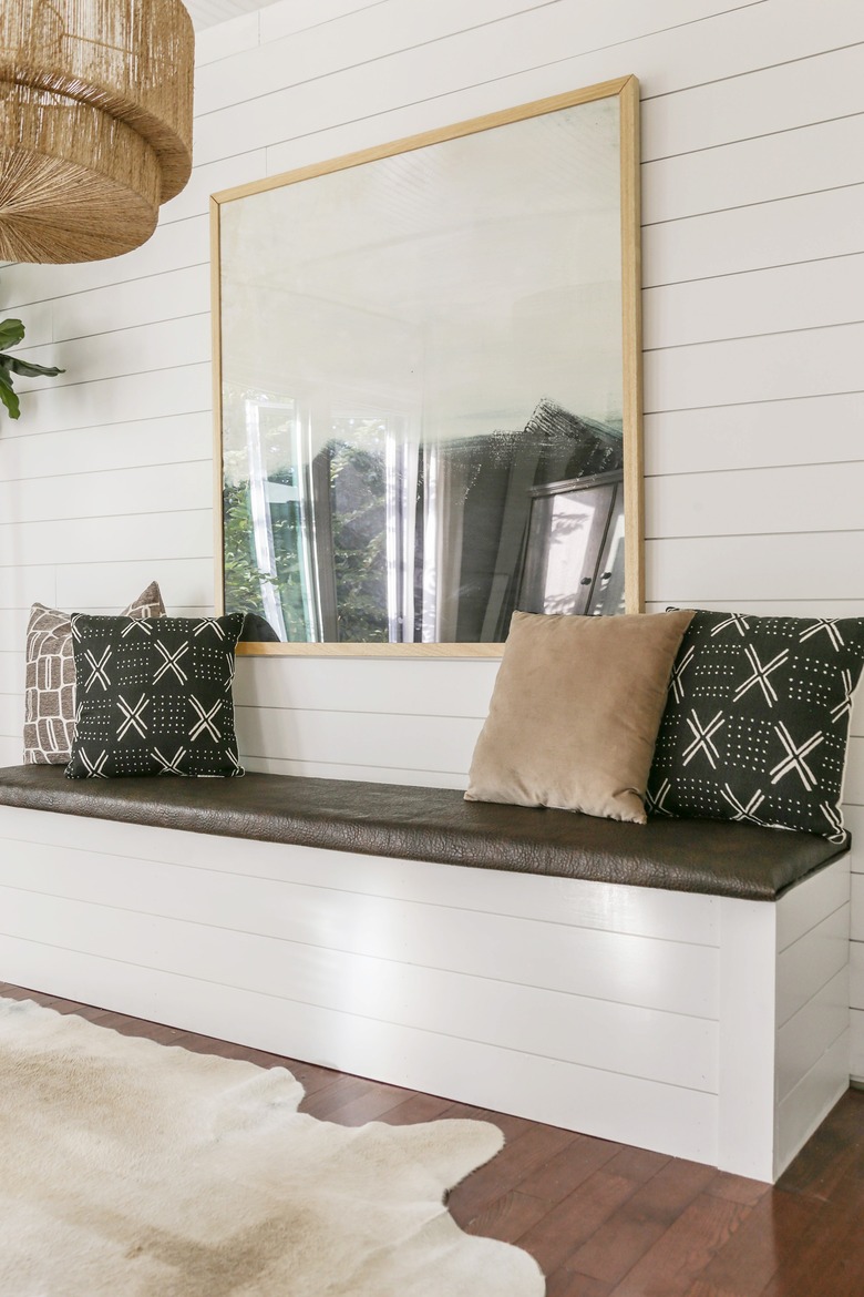 If you've always wanted to create a dining nook or a banquette for your kitchen, look no further than this stylish DIY storage bench created by Erica of Designing Vibes. It's just the thing to hold placemats, throw pillows, and other entertaining supplies.