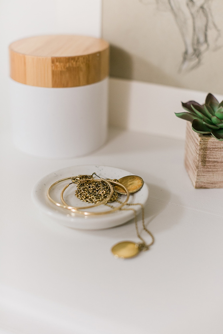Beautify bedside tables with a pint-size catchall or two — they're the ideal vessels for quickly stashing trinkets and baubles at the end of an evening. You can't go wrong with a rustic hand-thrown ceramic bowl or one made from sophisticated marble.
