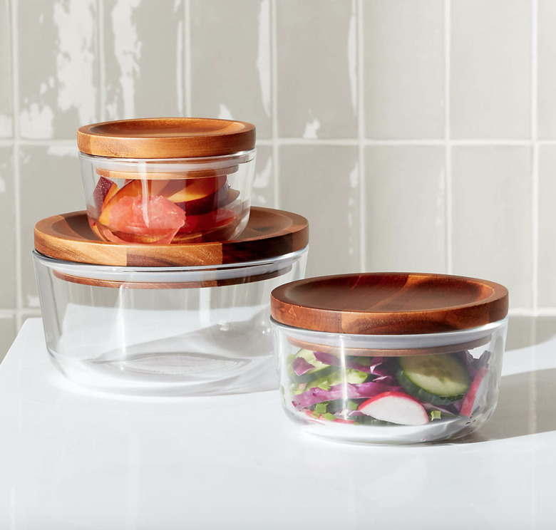 Sure, there are many food storage containers that come with wood lids, but few are made for refrigeration. These beauties from Crate and Barrel feature a pyrex base and acacia lids fitted with a silicone gasket for extra freshness.