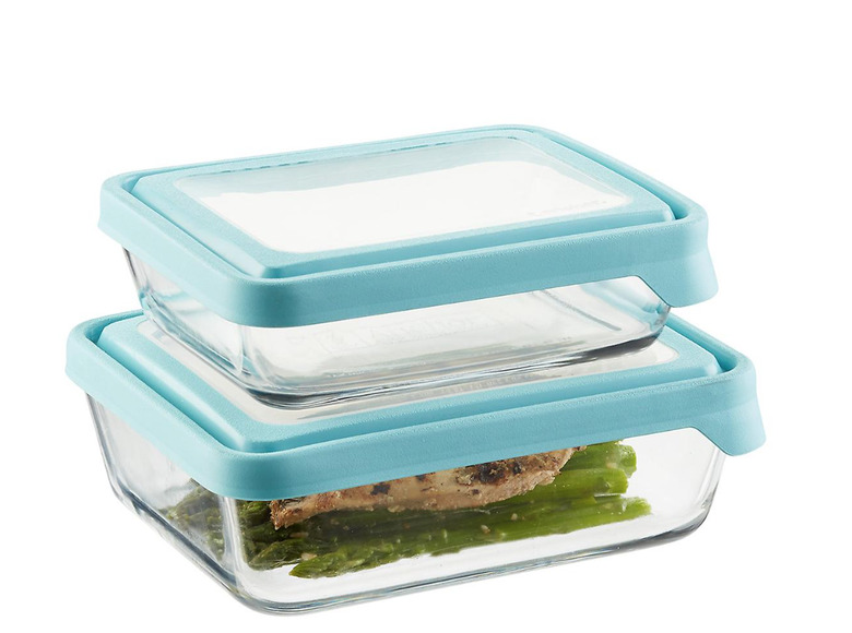 Food storage containers made of tempered glass are preferred for their strength and ability to remain stain-free even after storing hard-to-clean foods like tomato sauce. Anchor Hocking created containers with compression lids that render them spill-proof and help improve food preservation. They're also food-, dishwasher-, freezer-, and microwave-safe.
