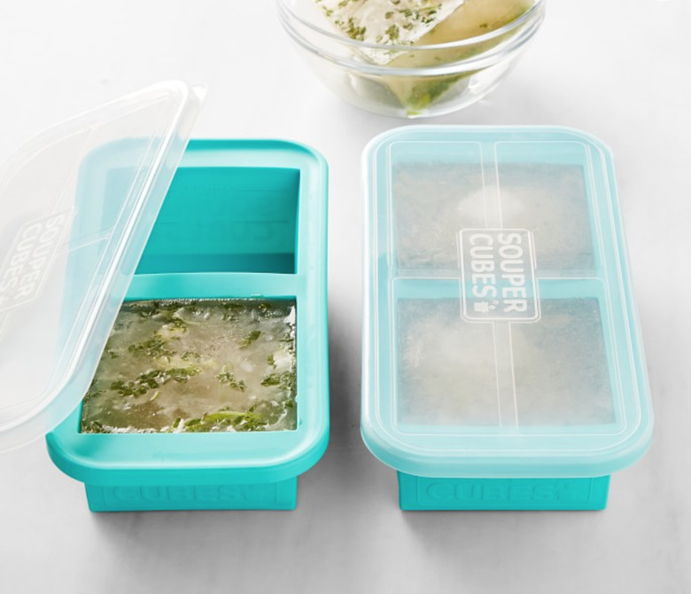 Storing liquids poses its own set of challenges. However, you can store soups, sauces, stews in perfectly sized personal 2-cup portions thanks to these Souper Cubes freezer trays. A clear plastic lid lets you peer inside, keeps freezer burn, spills, and odors at bay, and facilitates easy stacking.