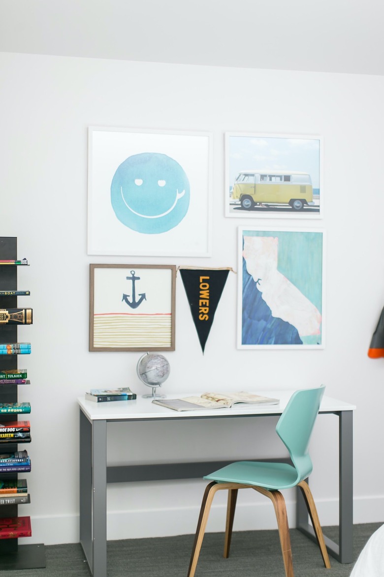Maintain a clutter-free book zone with modern undertones when you call upon a freestanding tower to do the heavy lifting, as Raili Clasen did in this elevated teen's room. The vertical orientation is a great space-saving tool that practically allows the shelving to disappear when filled with books.