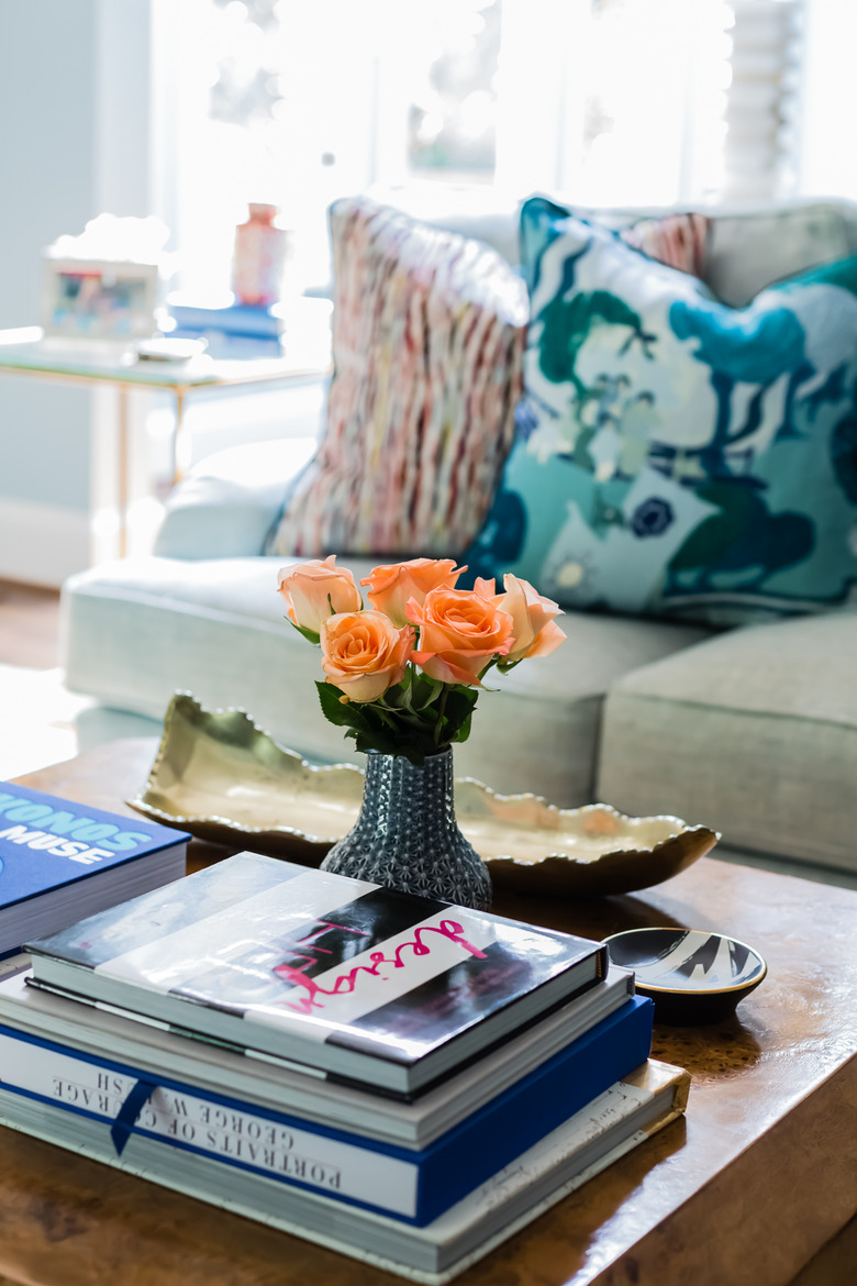 For an easy decor swap that only takes few minutes, Zandy Gammons, co-owner of The Warehouse Interiors, recommends rotating your coffee table books. "By doing so, it adds new color to the space and it adds a different conversation piece to flip through," she explains.