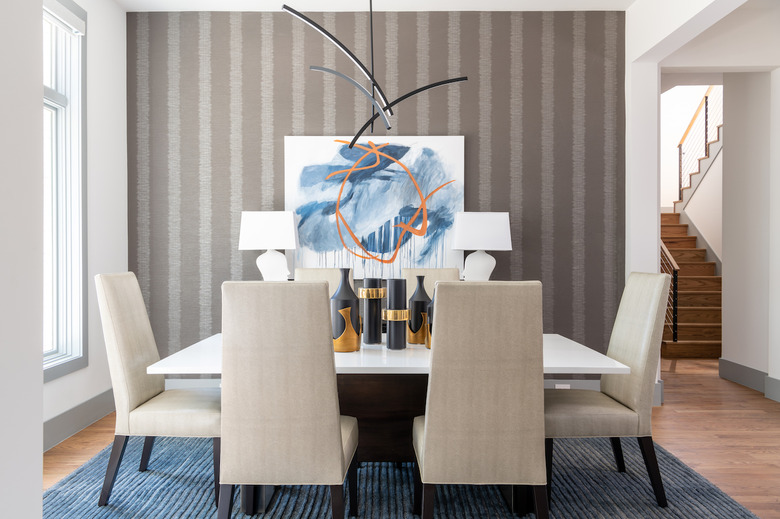 To make a big impact in a room without breaking your bank account, Mark Lavender of M. Lavender Interiors suggests wallpapering an accent wall. "An eye-catching print can create a great visual in a narrow space, and doesn't require purchasing a lot of wallpaper," he explains.