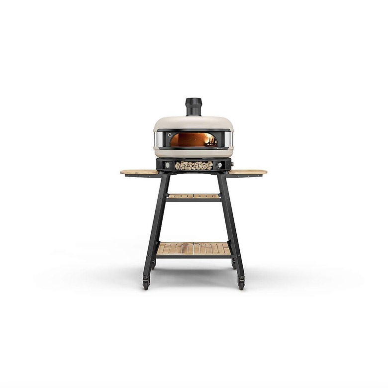If you're looking to go the ultra-traditional route, a wood-burning oven is the way to go. Wood ovens are a bit trickier to operate — you'll need to get comfortable with starting fires anytime you want a fresh slice of pizza — but they deliver crunchy, satisfying results. There are two main wood-fired pizza oven designs: models with a fire located beside the pizza and those with a fire pit at the bottom underneath the pizza. Having the fire closer to the pizza produces an authentic crispy crust, but maintaining the flames is a lot of work, especially since they're out of reach. Having the fire beneath the cooking pizza makes for easier access but an extended preheating period.