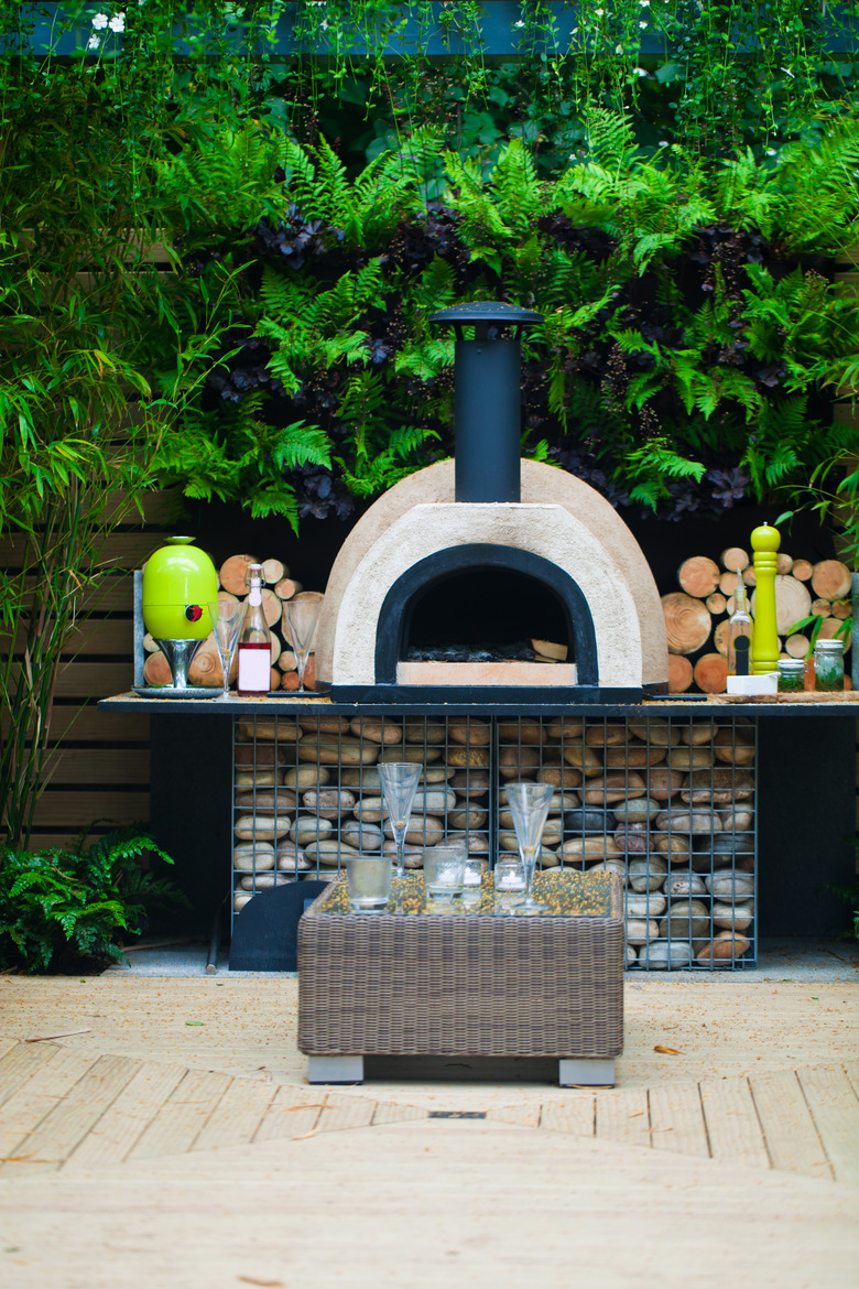 Wood pellets are a popular alternative to traditional wood logs because they ignite quickly and don't produce a lot of ash. There are a few small, portable pizza ovens on the market that work well with wood pellets. Both wood and wood pellets impart a distinct flavor that you just can't get with other fuel types. Remember that if you're opting for a wood-burning appliance, you'll have to order, buy, and store wood somewhere on your property. You'll also need to protect your woodpile from the elements. Some municipalities have restrictions on wood-burning appliances, so check your town's bylaws before installing or building one in your backyard.