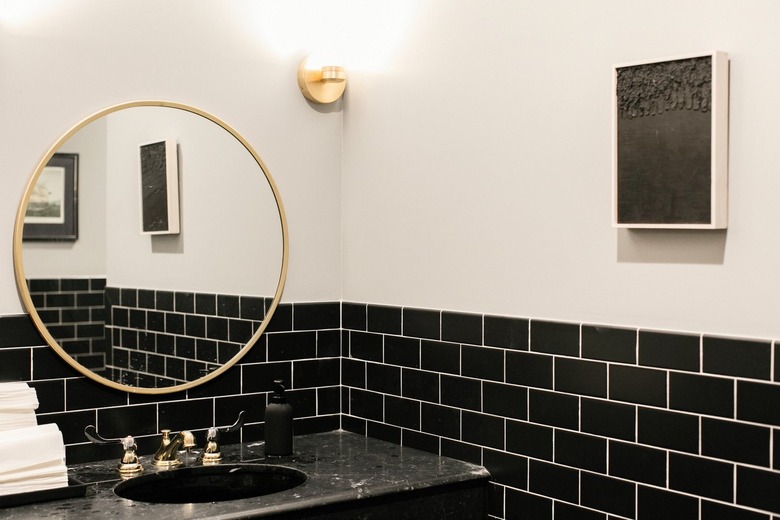 If you're jonesing for a walk-in shower with an industrial feel, outfit a glass shower door or panel with black metal framing. Here, Bre of Brepurposed has given a nod to old factory windows with this partition.