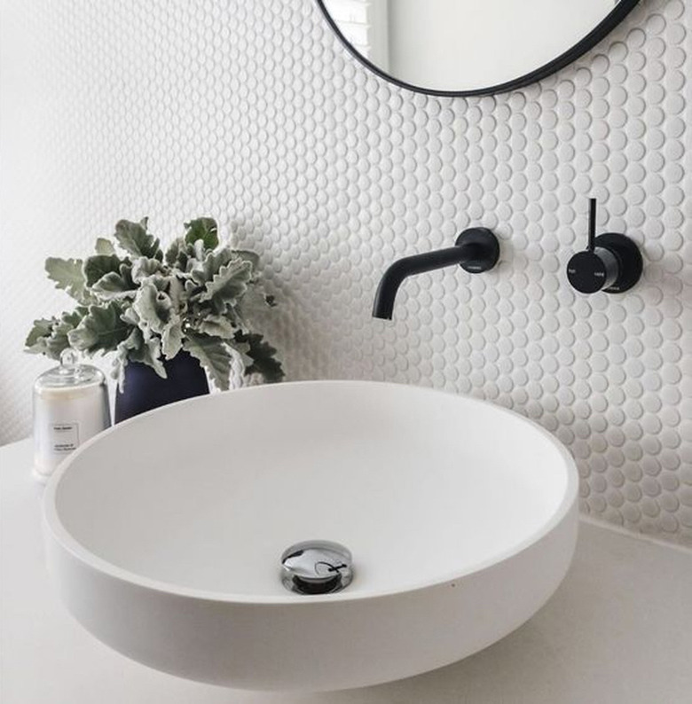 6. A matte black faucet will add the perfect amount of depth to an all-white space.