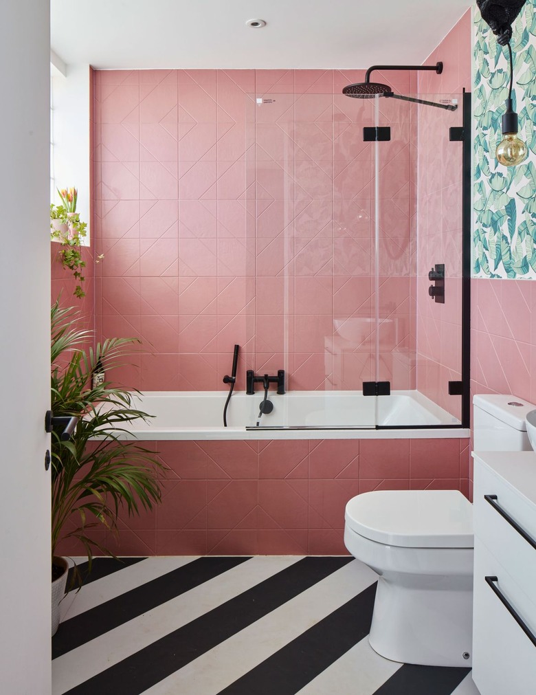 A high-contrast color pairing rarely goes out of style and when it comes to teal tile, stark white grout and a matching tub make for a truly wow-worthy combination. This bright nook from Aly Velji Designs shows the decorative prowess of the combo, which results in an entirely minimalist yet punchy finish.