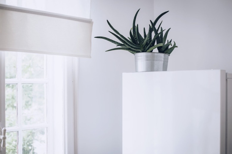 Like Cancer, an Aloe Vera plant needs little other than a happy home to lead a charmed life. For the Aloe plant, a happy home means a pot with excellent drainage (think ample drainage holes and cactus/succulent potting soil) and a window site with bright indirect light. Aloe Vera does best in temperatures between 55 and 80 degrees Fahrenheit, the temperatures of most homes, and requires minimal care. Irrigation shouldn't happen very often — wait until the soil is very dry — and no other nurturing is required. How dry is dry for Aloe soil? The top third of the soil should feel completely dry — for example, the top two inches in a pot with six inches of soil.