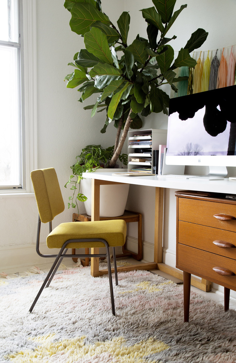 In any home office, built-ins are incredibly convenient. They offer great storage (you'll never need to buy a separate bookcase) and in the instance of a midcentury workspace, they provide perfectly sized cubbies to show off vintage, mid-mod decor. Just look at how Erin of Sunny Circle Studio has been able to display eye-catching tchotchkes in her built-ins.