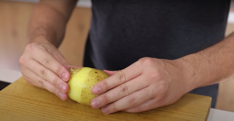 Have you ever avoided a recipe because it requires peeling potatoes? We've been there. Though potatoes are delicious and can be prepared in a myriad of ways, they are truly a pain to peel. Not only do the peels get everywhere, but you also have to actively try not to slice your fingers in the process. Yet, what if we told you that there is a potato peeling hack that will solve these problems?