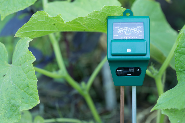 While you could send soil samples to a lab or use a pH meter to determine very specific pH levels, the more general DIY approach is much more fun and involves a common garden staple: red cabbage. Bring 2 cups of distilled water, not tap water, to a boil; distilled is necessary because it has a neutral pH. Simmer five red cabbage leaves torn into several pieces for 10 minutes and then let the pot sit for 30 minutes or so. Strain out the cabbage while pouring some of the liquid into two different clear glass containers. One container is purely for reference.