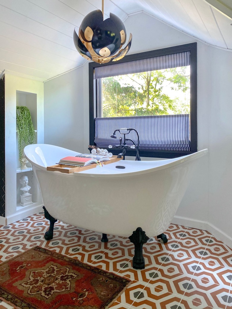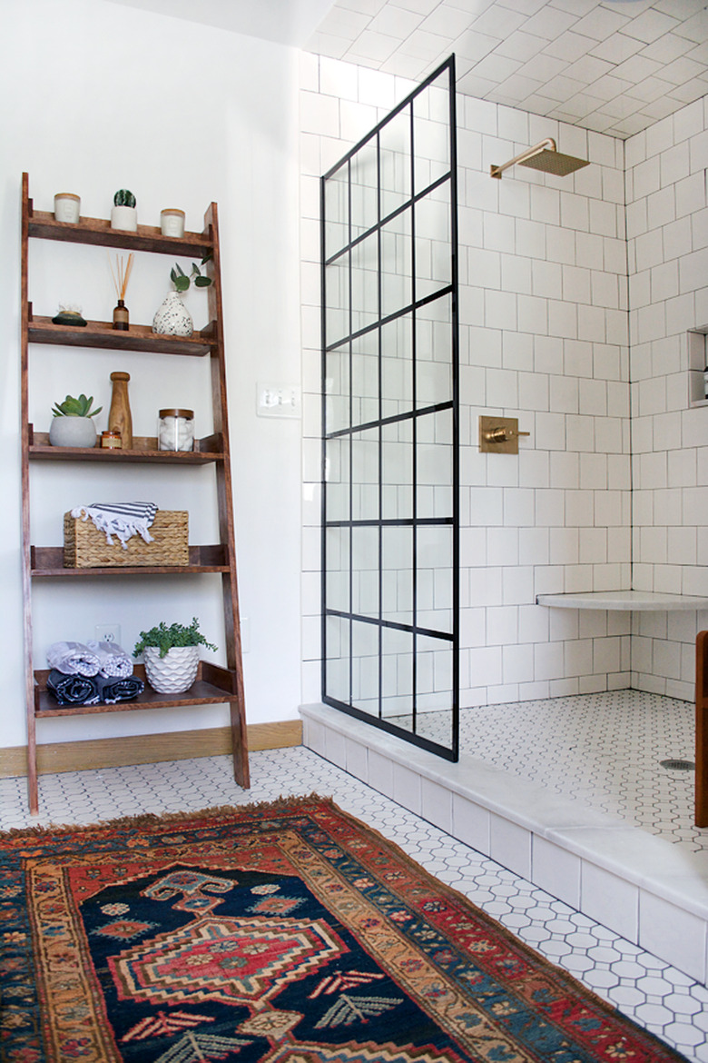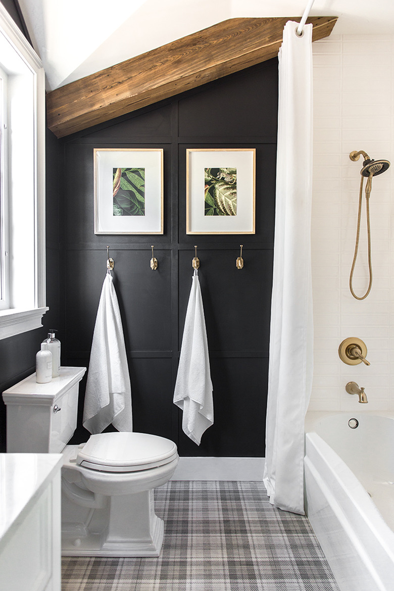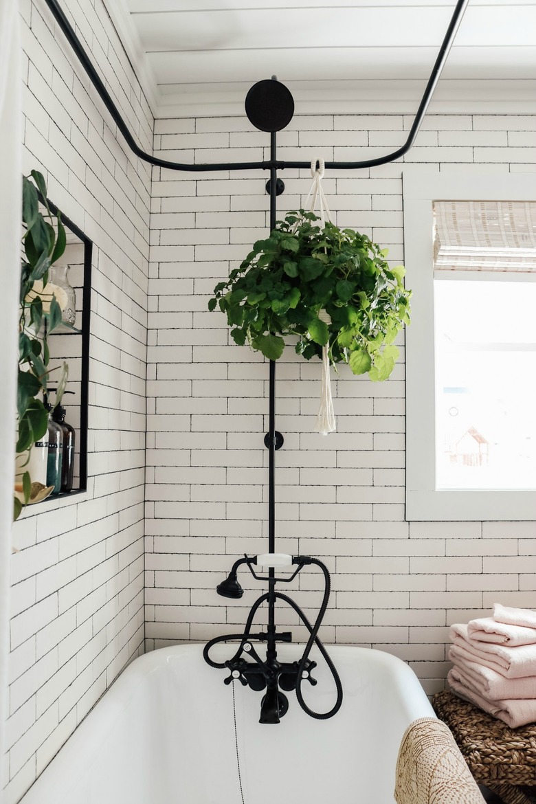 The color black and industrial design have always been synonymous with one another, and that goes for your bathroom fixtures, too. To add a touch of black to your space, opt for a matte black showerhead and tub faucet as seen in this design by Liz of Within the Grove.