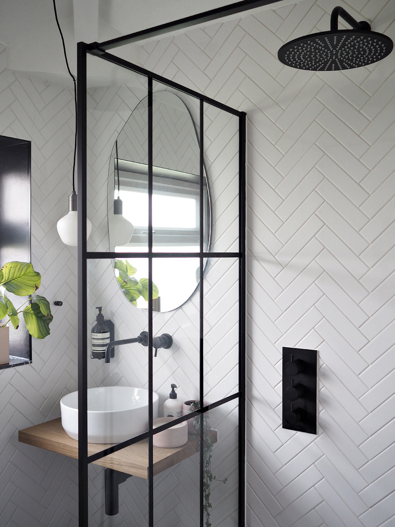 Stuck with a small bathroom? A shower screen with steel panels could just be the solution. And thanks to the increased popularity of industrial Crittall frames — the metal window bars that were originally developed by Francis Henry Crittal in the 1880s — there are plenty of affordable dupes to pick from. Alternatively, if you're feeling DIY-savvy, you could try hacking the style yourself with black vinyl tape. Olivia of Lust Living chose the former option for her bathroom makeover, and you can see how it keeps the space feeling fresh.