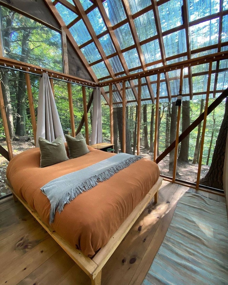 Come summer, we're all in for this open-air cabin. Is it too much to ask for a gentle, passing rain shower while we're there?