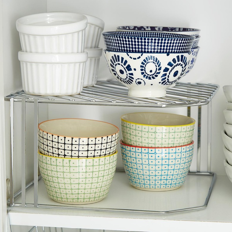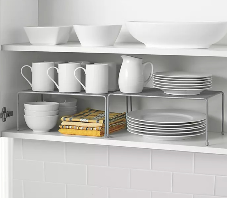 A good shelf riser can be a game changer for your kitchen cabinets. Along with creating additional storage space in a small cabinet, these expandable metal mesh cabinet shelves can be used together to forge an extra sturdy spot for stacking bowls, plates, and glassware.
