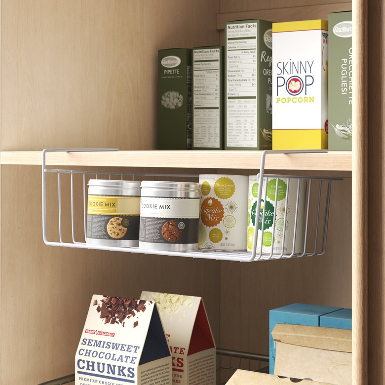 Never underestimate the storage power of a sleek under shelf basket. This clever openwork metal basket has hooks that simply slide over a cabinet or pantry shelf so you can score easy-to-access storage space in an underutilized area.