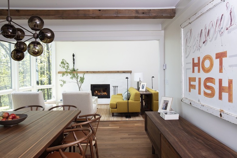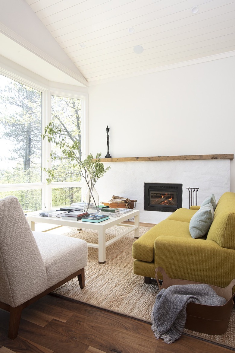 The walls were kept bright white and Sass incorporated plenty of neutral hues, noting that the earthy tones and textures keep it cozy during the long Minnesota winters. But she wasn't afraid to use a few bold accents, too. The living room's sunny yellow sofas serve as statement pieces in the light-filled room and a pink velvet sofa is a grace note in the main bedroom.