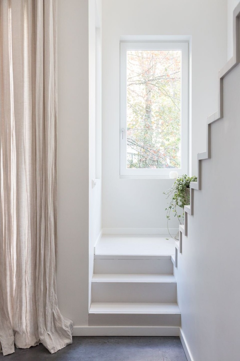 Scandinavian design is all about the neutrals, but if you don't want to commit to white and cream paint colors, hanging neutral-colored drapes over a white wall or in a blank space will create texture and the coziest Nordic feel. This hallway has a very light curtain that adds tonal interest and dimension. Plus, it can cover up unsightly storage in a pinch.