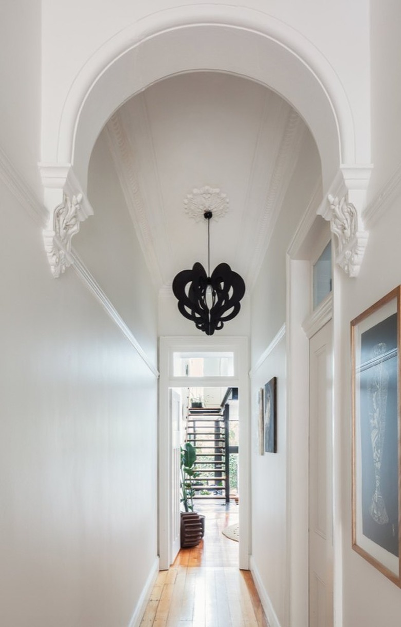 The fun thing about choosing pendant lighting for your hallway is that there really are no rules when it comes to style. You'll want to consider the scale in relation to your space, but Sklar Design proves a light fixture that's a little bigger, and in a totally contrasting style to its surroundings, brings on the wow factor we all crave.