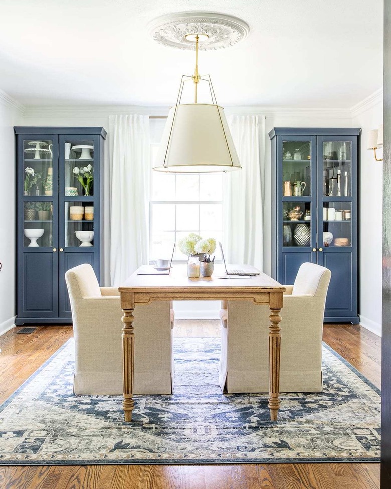 If you want to keep it really classic in your workspace, take a page from Lauren of Bless'er House's book and stick with a pendant featuring a fabric drum shade. Although this pick from Rejuvenation looks somewhat traditional, the design incorporates a dash of modern flair with subtle linear metal details.