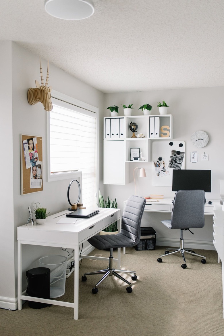 In order to optimize productivity and think clearly, there are two things that you have to do in any office space: declutter and come up with a brilliant storage solution for all those office supplies. Sure, we love design ideas with bookcases and custom built-ins, but there's something about open shelving hung on the walls that really levels up a workspace.