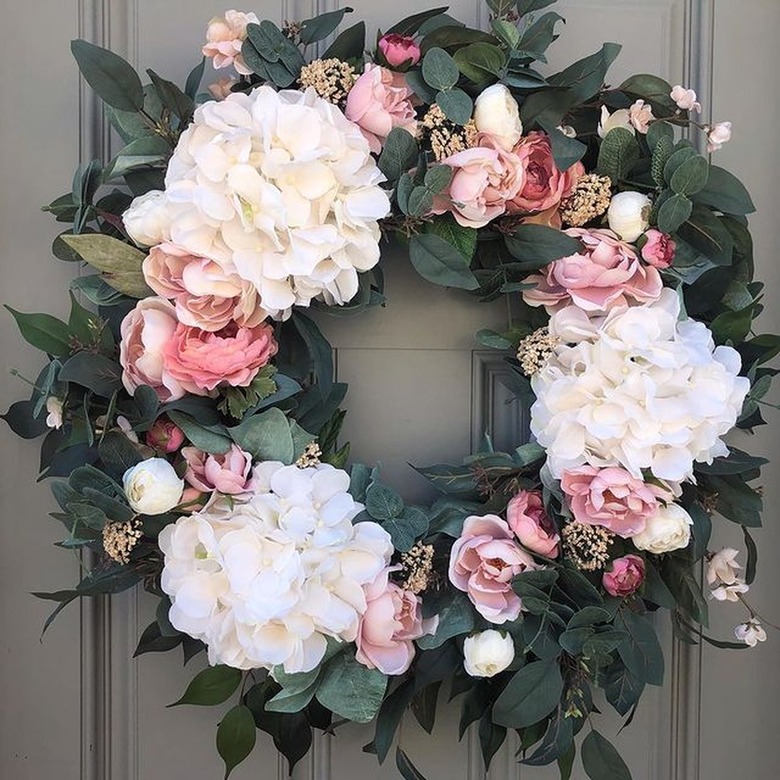 We can't get over the fact that @wildatheartfloristla created this beauty in a parking lot. We also love the roses that offer a pop of orange against the white, green, and purple.