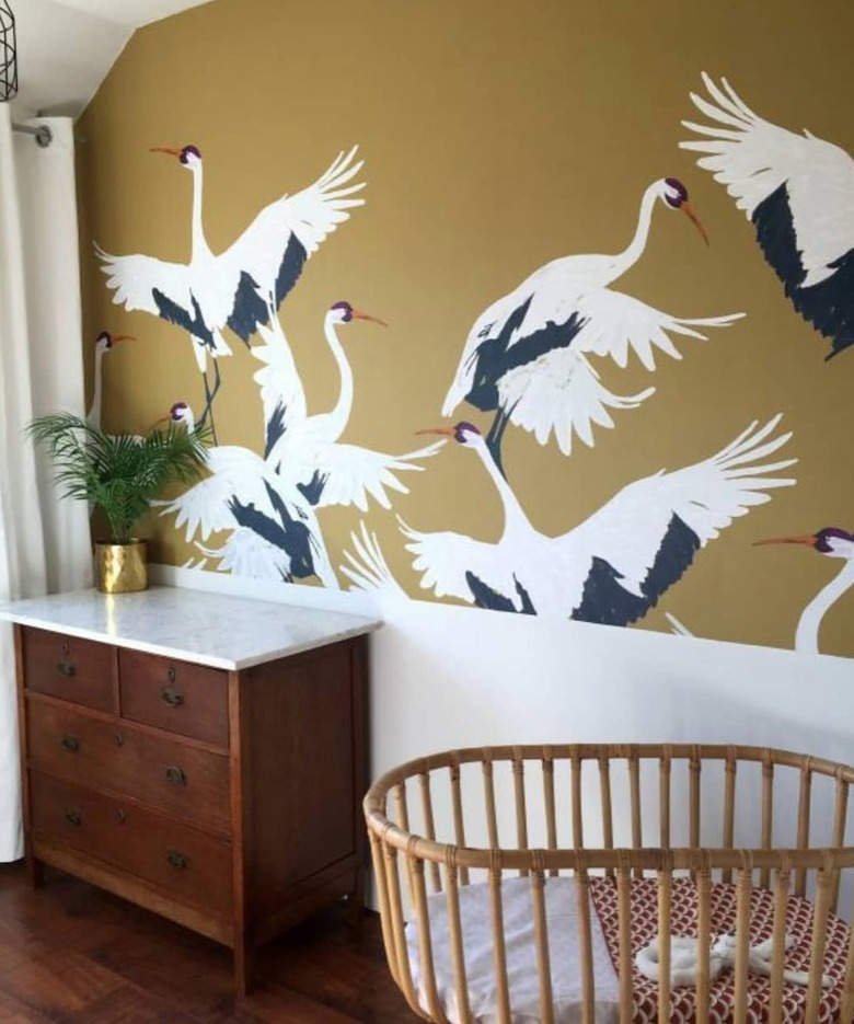 It's okay to add a touch of the classics to a kid's space, and this wallpaper can help you do it. Here, it makes a chic nursery even more elegant, and the feathered friends keep the space feeling fun.