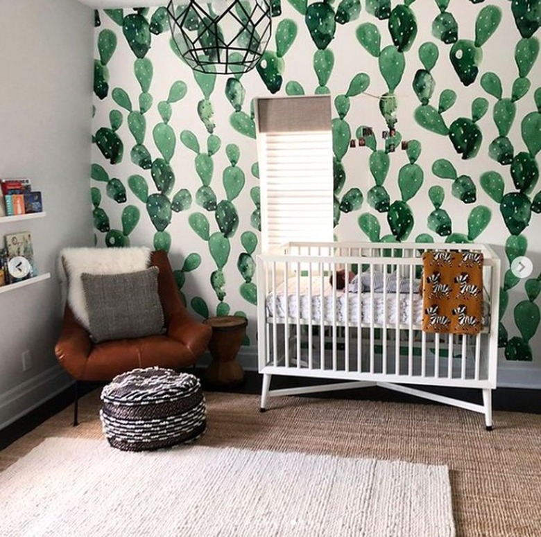 Love the desert look a lot? Well, you can add it to your little one's room with nursery wallpaper that features a trendy cactus or botanical pattern. Cute boho accents and a sweet throw blanket for swaddles will complete the space.